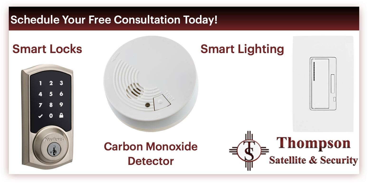 At Thompson, we are committed to making your home and business safer and more efficient. That includes items like smart locks, carbon monoxide detectors, and smart lighting. Let us help you get the most out of your satellite and security systems.